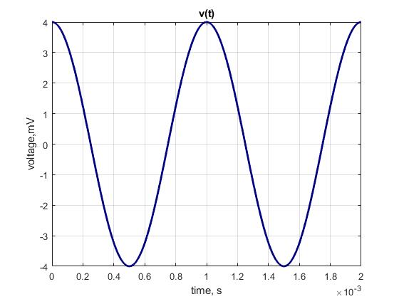 c) \(v(t) = 4\ cos(360{^\circ}*1\ kHz*\ t)\ mV\)