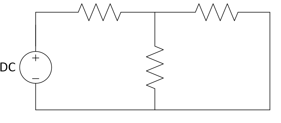 R~eq~ =\(\ \left( R_{3}ǁR_{2} \right) + R_{1} = \frac{1}{\frac{1}{500\ \Omega} + \frac{1}{500\ \Omega}} + 50\ \Omega = 300\ \mathrm{\Omega}\)