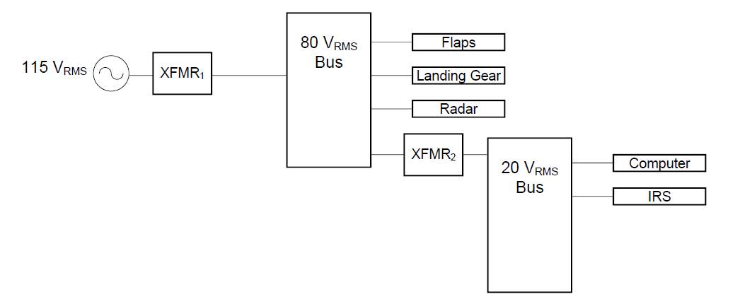 \[a_{\text{XFMR1}} = \frac{115}{80} = \boxed{1.4375} \qquad a_{\text{XFMR2}} = \frac{115}{20} = \boxed{5.75}\]
