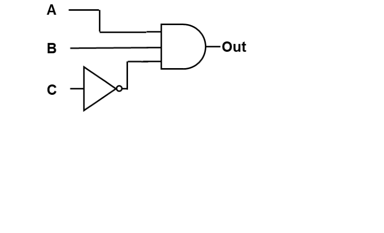 For the logic diagram below, fill out the corresponding truth table.