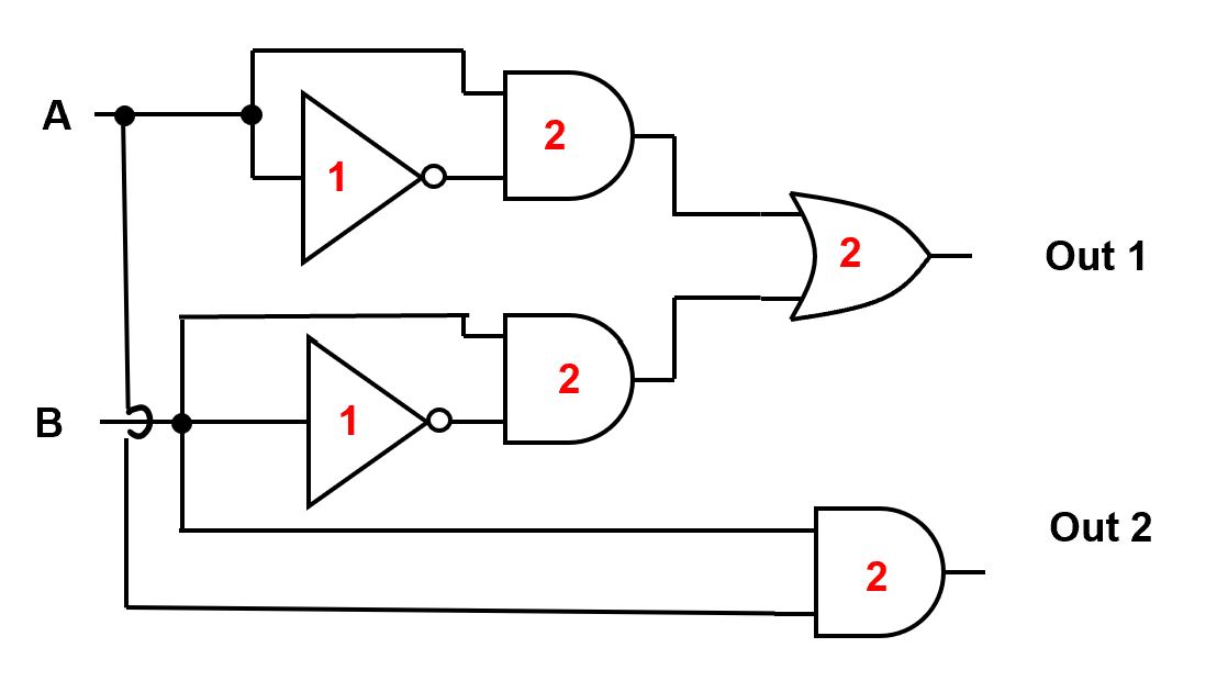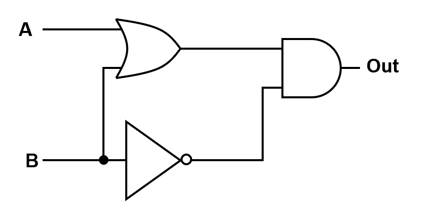 Notice that the output is 1 only when \(A = 1\) and \(B = 0\).