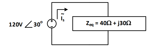 Solve: First, we will use Ohm’s Law to find the voltage VC. Since the current is given in the time domain, we need to convert IS to phasor form. Remember, the magnitude of the phasor term needs to be RMS, so we have: