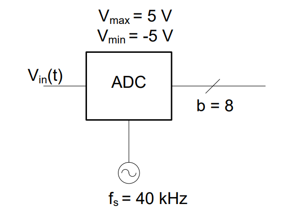Up to this point, if we wanted to prevent aliasing, we simply picked an ADC with a sufficiently large sampling frequency. In this problem, and many real world problems, however, we are given the sampling frequency of a certain ADC. Additionally, the ADC also has a large voltage range when compared to our input signal. Therefore, we will also need to make sure the dynamic range of the input signal and the ADC are well aligned.