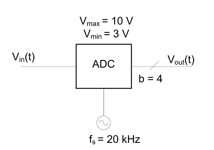 You want to convert \(v(t)\) to binary numbers to be stored. Your ADC has