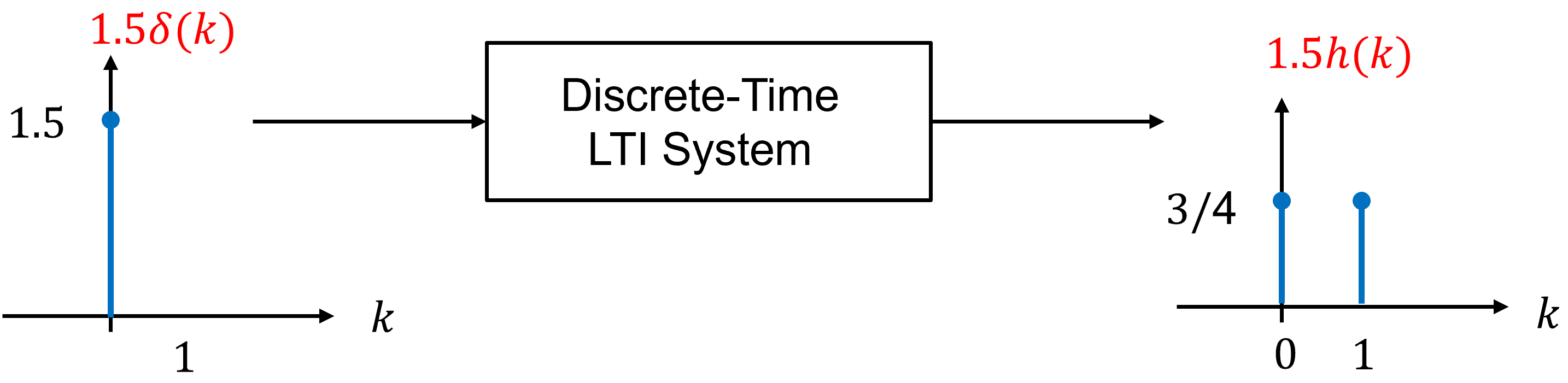 Fig. 3 Illustration demonstrating scaling: input \(a\delta(k)\) produces output \(ah(k)\).#