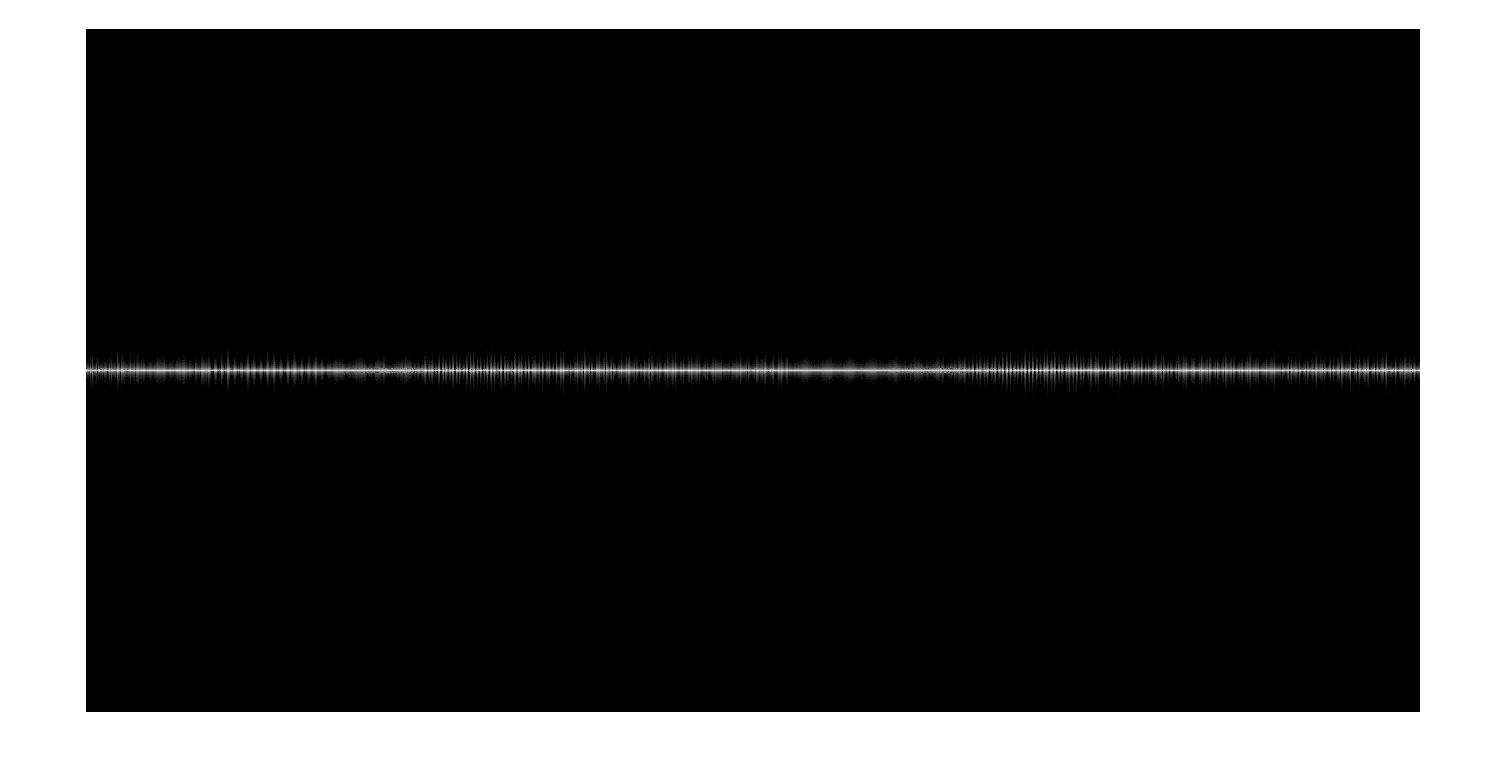 This takes an input signal starting at sample n0, and computes the spectrum of nt segments of the signal, each of length nf. The result is displayed as an image, with time going horizontally, and frequency vertically. The center frequency is in the middle of the plot. For example, for the data provided above, we can look at the first second of data, by looking at 2000 blocks each of length 1024 samples (2048000 total samples, or one second at the 2.048 sampling rate). The results is